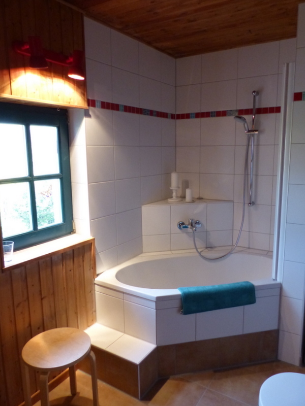 - Bad mit Eckwanne/Dusche und Waschmaschine
